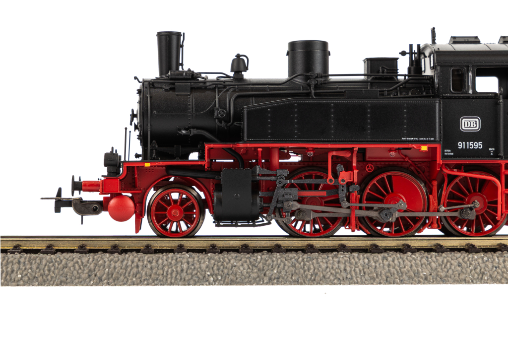 Neuheit 2025: Mit der T 9.3 in der Ausführung als BR 91.3 rollt ein Multitalent aus der großen Zeit der Eisenbahn auf die H0 Gleise. Im Vorbild sowohl vor Güter- und Personenzügen als auch im Rangierdienst erfolgreich eingesetzt, begeistert das PIKO Modell auch auf der Anlage im Universaleinsatz. Konstruktiv lässt die Expert-Dampflok kaum Raum für Wünsche offen und berücksichtigt alle baulichen und optischen Besonderheiten der Vorbildmaschine. Das Dach des Führerhauses ist abgerundet und durch die darunterliegenden Fenster fällt der Blick auf die detailliert ausgearbeitete Inneneinrichtung. Zahlreiche freistehende Bauteile, wie eine Pfeife auf dem Dach, die Glocke auf dem Kessel sowie originalgetreue Lampen und Leitungen zeugen von Modellbau auf höchstem Niveau. Gleiches gilt für den Fahrwerkbereich mit feinen Zinkdruckguss-Rädern und dem filigranen Bremsgestänge. Der werkseitig integrierte PIKO PSD XP Sound-Decoder ermöglicht die Schaltung von Beleuchtungen im Führerstand und Fahrwerksbereich. Zudem simuliert eine ebenfalls digital geschaltete, flackernde LED im Bereich der Feuerbüchse die rot glimmenden Kohlen. Alle Beleuchtungen, inklusive des in Fahrtrichtung wechselnden Lichtwechsels sind in moderner, wartungsfreier LED-Technik ausgeführt. Die zahlreichen, fahrzeugtypischen Sounds sorgen für originalgetreuen Modellbahnbetrieb.
