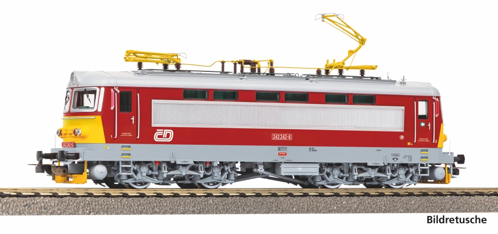 Neuheit 2025: Als Weiterentwicklung der BR S499.0 entstanden Mitte der 70er-Jahre die robusten Maschinen S499.02. Abgesehen von den Seiten, welche anstelle der großen Fenster ein breites Lüfterband zur Kühlung des Transformators zierte, glich der Lokkasten dem der Gleichstromlokomotiven vom Typ E 469.3. Zwischen 1975 und 1981 wurden 86 Einheiten bei der ČSD in Dienst gestellt und sowohl vor Güter- als auch Personenzügen eingesetzt. In den 1980ern erhielten einige der Lokomotiven moderne Einholmstromabnehmer und 1988 erfolgte die Umzeichnung zur Baureihe 242. Digitale Schaltung von Führerstandbeleuchtung, Maschinenraumbeleuchtung und Fahrwerksbeleuchtung durch Nachrüstung eines Digitaldecoders | Zwei Einholmstromabnehmer aus Metall | Detaillierte Einrichtungen in den Führerständen und im Maschinenraum | Perfekt eingefasste Stirnfenster